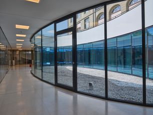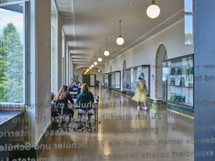 Die grosszügige Mensa der Kantonsschulen Hohe Promenade und Stadelhofen befindet sich gleich auf dem Schulareal im so genannten Hallenbau zwischen dem Schulhaus und der Kantonsschule Stadelhofen.