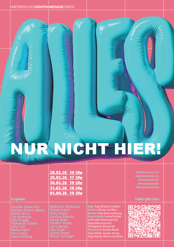 Ein Kreis irgendwo in Zürich, der zu eng ist für all die Fragen. Jugendliche, die nicht wissen, wer sie sind, wen sie lieben wollen oder wohin sie gehören. Zwischen Freundschaft und Einsamkeit, Sehnsucht und Selbstzweifel suchen sie nach Halt – und nach einem Ort, der mehr verspricht als das Hier. Alles, nur nicht hier ist ein Stück über die Suche nach sich selbst, über queere Identitäten, Verletzlichkeit und den gemeinsamen Wunsch, endlich gesehen zu werden.