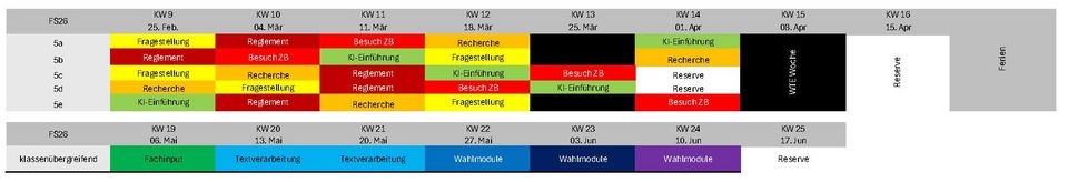 In drei Phasen werden Module angeboten, die Einführungen, theoretisches Wissen und spezifische Anwendungen beinhalten. Dazu gehören Module zum Reglement, zur Recherche, zu Konzept und Fragestellung, zu KI-Anwendungen, Textverarbeitung, Fachinputs und als Wahlmodule konkrete methodische Inhalte. Der Plan unten gibt eine Übersicht, PDF des Plans downloaden. Die Dokumente zu den einzelnen Modulen befinden sich im Intranet, interner Link.