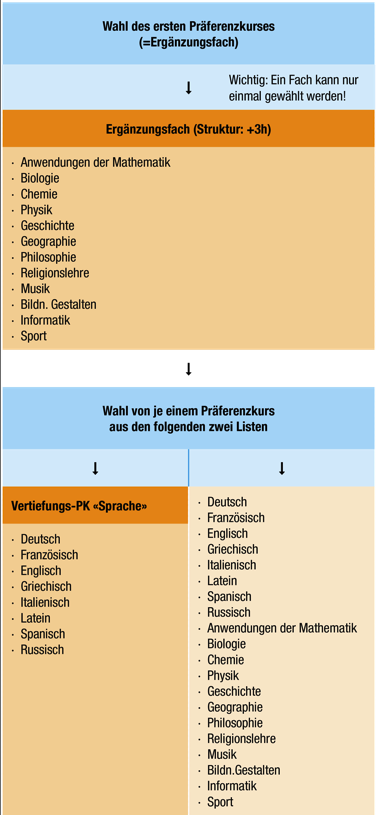 Gewählt werden folgende Schwerpunkte und Unterrichtsgefässe.