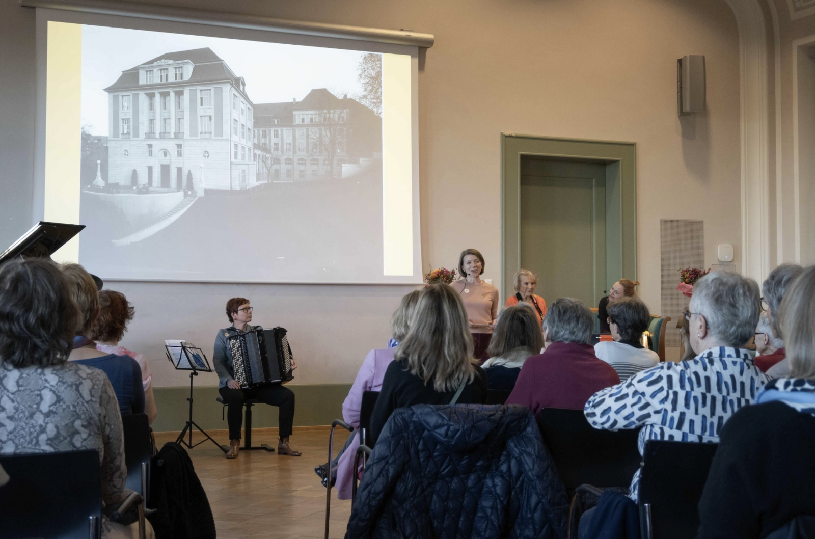 Zum Abschluss sang Heidi Diggelmann, begleitet von Yvonne Glur am Akkordeon, drei französische Chansons, die sie bereits 1955 vorgetragen hatte. Ihr Auftritt löste grosse Begeisterung aus und wurde mit langem Applaus gefeiert.