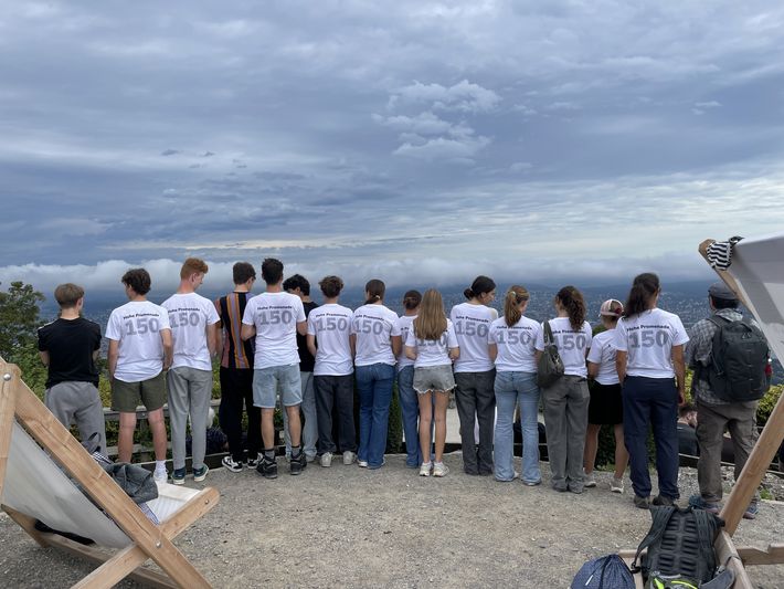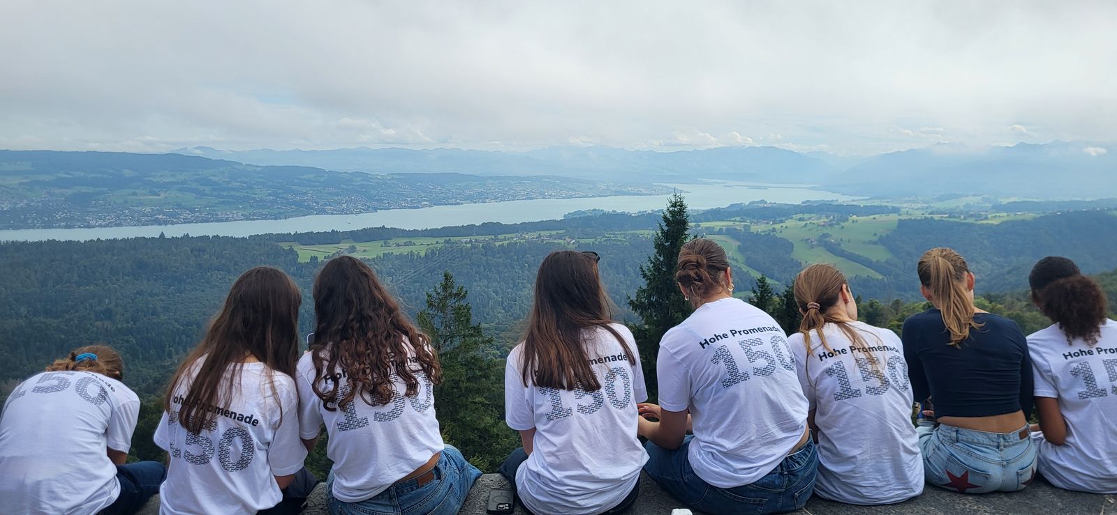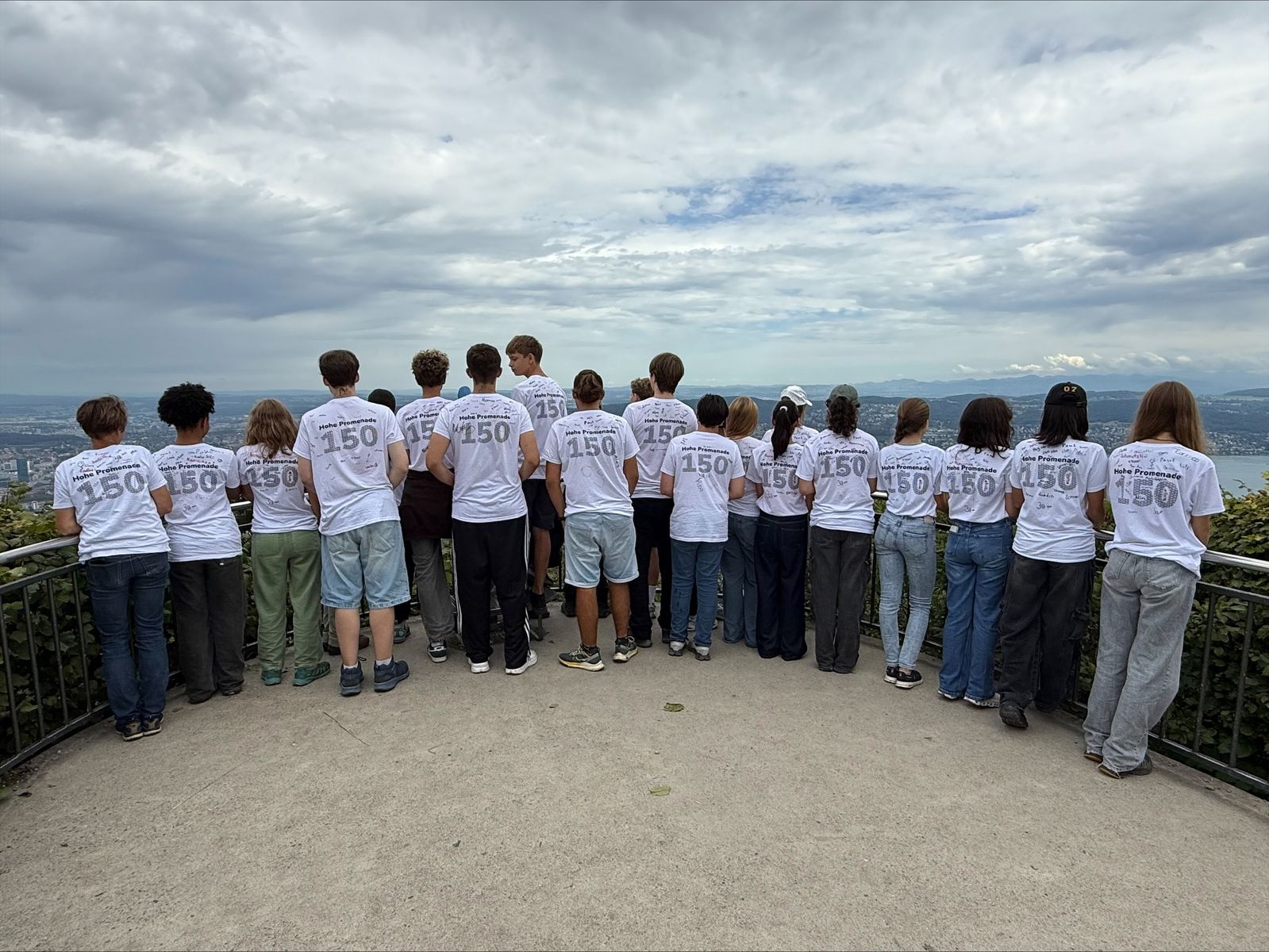 Am Morgen versammelte sich heute die ganze Schulgemeinschaft auf dem Sportplatz, um später zu einer Sternwanderung auf den Uetliberg zu starten. So haben es die Höheren Töchter früher gemacht. Ein toller Anlass im Rahmen der 150-Jahr-Feierlichkeiten der Hohen Promenade.