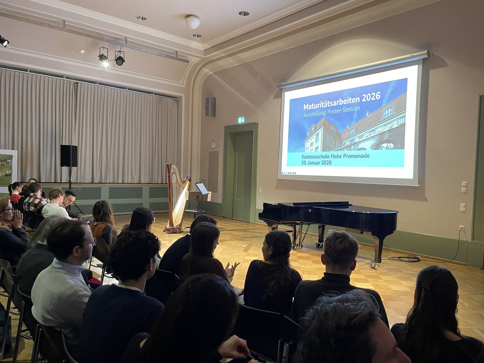 Am Dienstag, 20. Januar 2026, präsentierten die Sechstklässler:innen tagsüber ihre Maturitätsarbeiten. Abends fanden in der Aula ab 17.45 Uhr die Poster-Session und im dritten Stock die Ausstellung aller Arbeiten statt. Eltern, Angehörige, Freunde und Interessierte erschienen zahlreich und staunten über die Vielfalt der Themen.